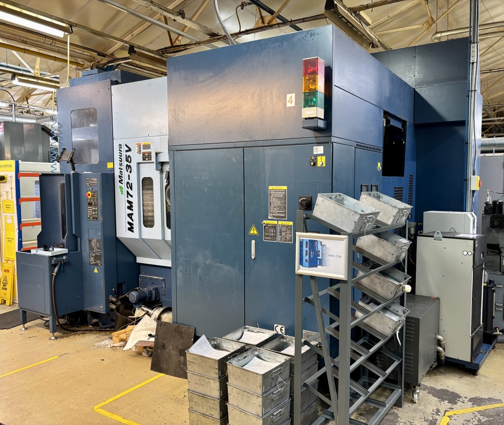 - View2010 Matsuura MAM72-35V PC32 5 Axis Multi Pallet Loading Vertical Machining Centre With G-Tech 30i ControlMaximum Component Dimension Ø350 x 240mm High. Maximum Pallet Load 60kg. Maximum Workpiece Dimension Ø350mm x 300mm High. Axis Travel 'X'=550mm, 'Y'=440mm, 'Z'=580mm, 'B'= +65/-125°, 'C'=360°. Rapid Traverse 'X,Y,Z'=60m/min, 'B'=50rpm, 'C'=...