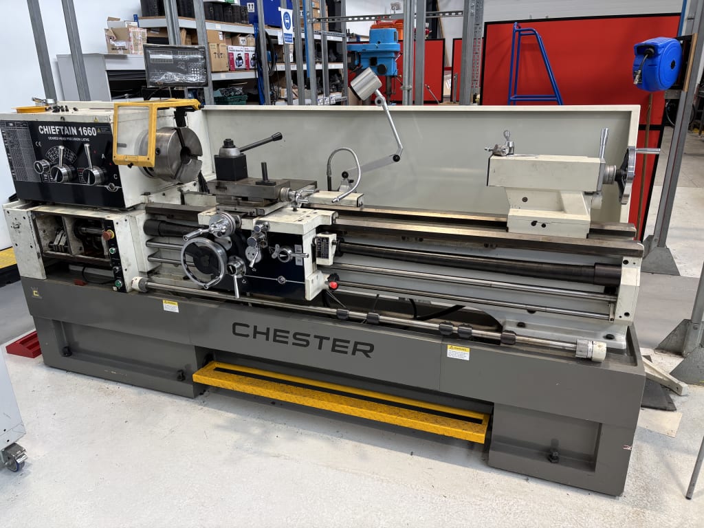 - ViewChester Chieftain 1660 Gap Bed Geared Head Centre Lathe With Quark DROØ250mm 3 Jaw Chuck. Maximum Swing Over Bed Ø425mm. Maximum Swing Over Cross Slide Ø250mm. Maximum Swing Over Gap Ø640 x 310mm. Centre Height 210mm. Distance Between Centres 1,500mm. Spindle Bore Ø80mm. Speed Range 25-1,800rpm (5.6kW Motor)....