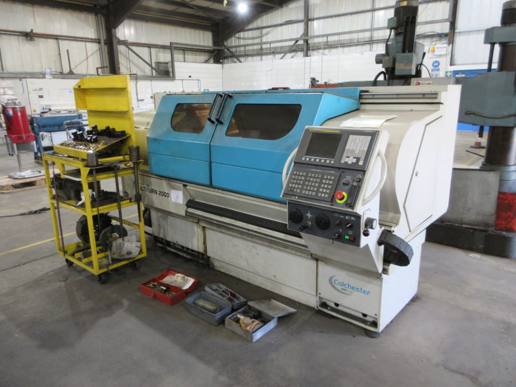 - ViewColchester Multiturn 2000 CNC Flat Bed Centre Lathe with Fanuc Series Oi-TC CNC Control (2006)2-Axis; Swing Over Bed Approx Ø400mm; Swing in Gap Approx Ø580mm; Distance Between Centres Approx 1,250mm; Spindle Bore Ø55mm; Spindle Power 7kW; (1) Ø10" 3-Jaw Chuck; Tail Stock; Spindle Nose D1-6; Maximum Spindle Speed 2,700RPM; Duplomat...