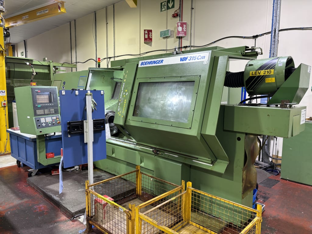 - ViewVDF Boehringer VDF 315CM CNC Slant Bed Lathe With Siemens ControlTurning Ø480mm. Swing Over Bed Ø520mm. Swing Over Cross Slide Ø480mm. Distance Between Centres 1,000mm. Spindle Bore Ø78mm. Axis Travel 'X'=405mm, 'Z'=1,029mm. Maximum Spindle Speed 3,550rpm (43kW Motor). 12 Station Turret. S/No. 1117.7198-...