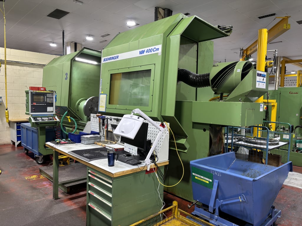 - ViewVDF Boehringer 400 CM (4) CNC Slant Bed Lathe With Siemens Sinumerik ControlØ450mm 3 Jaw Power Chuck. Swing Over Bed Ø750mm. Swing Over Cross Slide Ø700mm. Turning Length 1,500mm. Spindle Bore Ø132m. Axis Travel 'X'=620mm. 16 Station Turret. VDI 50 Toolholders. Maximum Spindle Speed 1,800rpm (53kW Motor). S/No. 111...