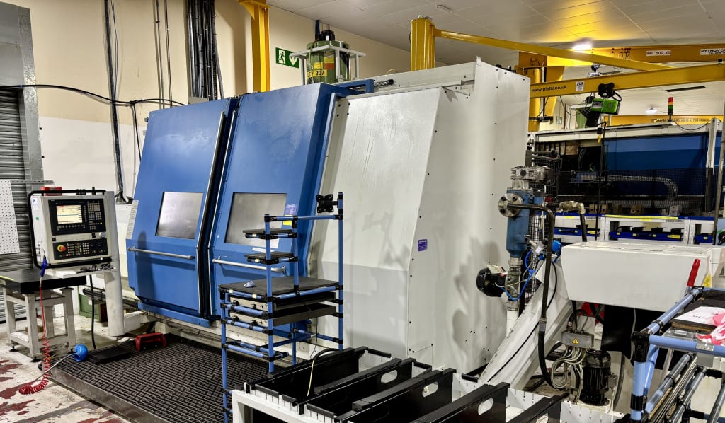 - ViewDaewoo Puma TT 2000SY Twin Turret Turning Centre with Fanuc 18i-TB CNC Control (2005)With Hydrafeed Multifeed MX-1B Short Magazine Automatic Bar Feed. Swing Over Bed 800mm. Swing Over Saddle 620mm. Max Turning on Upper Turret Ø390mm. Max Turning on Lower Turret Ø300mm. Max Working Length 350mm. Max Bar Ø65mm. 'X1' Axis Trav...